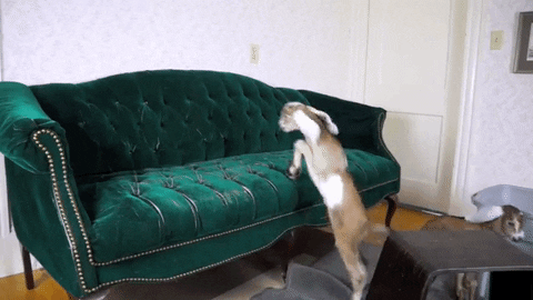 Video becoming famous online shows Wilma and Lentil urgently attempting to bounce up onto a love seat. Their initial couple of endeavors don't completely go to design, as they more than once confound their jump and wind up tumbling down to the floor.