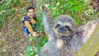 Subsequent to deciding the creature wasn't debilitated by his essence, Sueth stuck a selfie stick into the tree and took this great "sloth selfie."